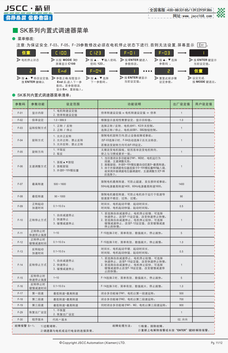 精研電機始終秉承“精益求精,研發創新”的理念為客戶提供優質可靠的產品。 SK系列內置式調速器是SNT系列調速器的升級版,在外觀上SK系列使用數顯菜單,修改設定方便快捷。而在功能上,其除了擁有SF系列面板式全部的功能外,新增的多段速控制,模擬量控制等功能給了電機控制更多的可能性。 提示SF系列需要搭配我司YT系列調速電機使用,在選購本產品時請注意。